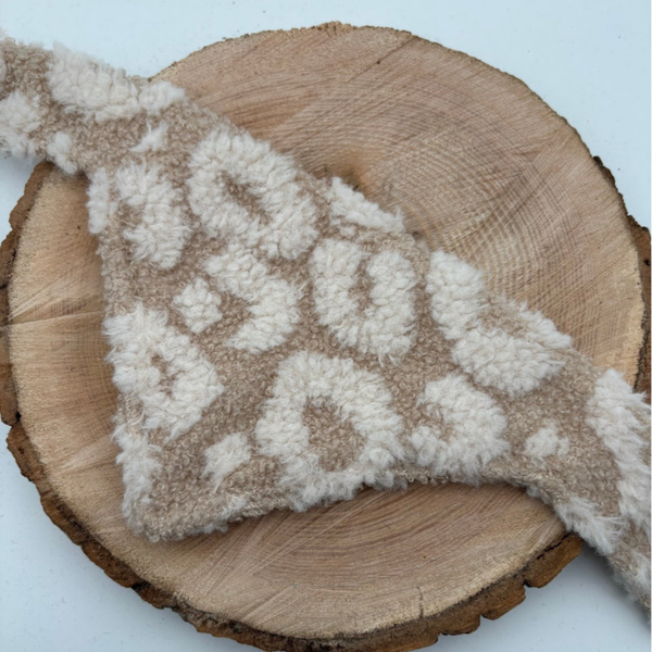Halstuch in wunderschönem Boucle Leo Stoff in weiß und beige. Geeignet für einen Halsumfang von 23-27cm.