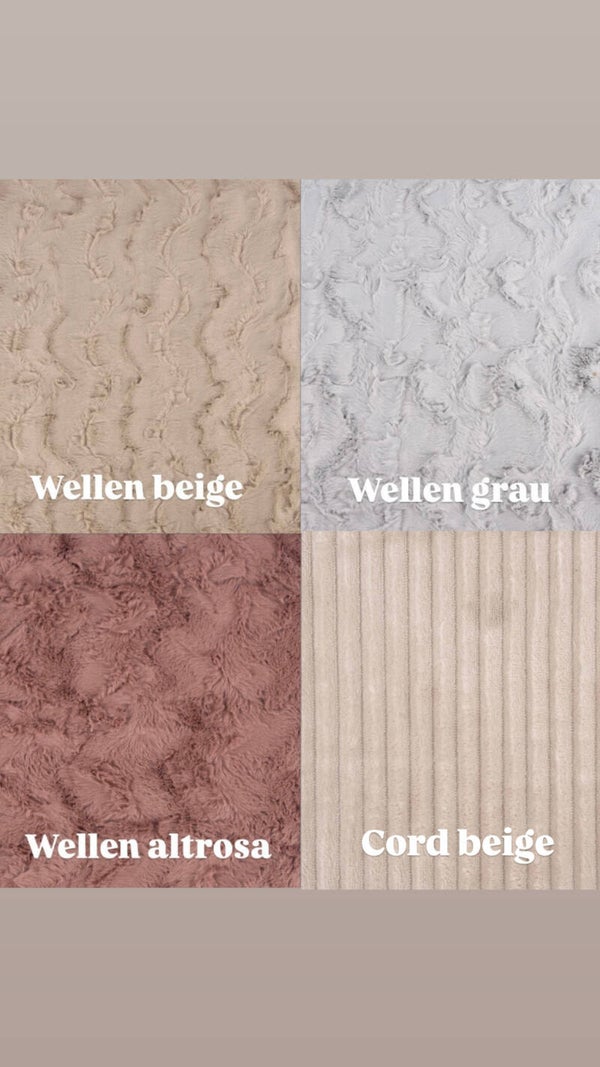 - Innenstoff: wahlweise weicher Teddy- oder Fleecestoff