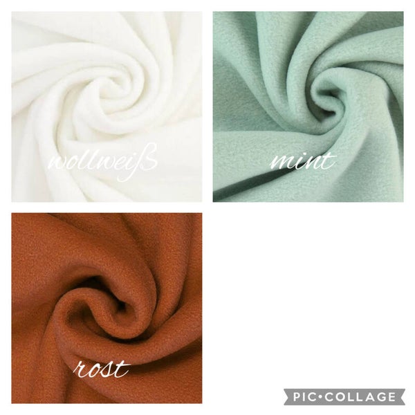 Material: Kuschelig weicher Teddystoff, der warm hält und trotzdem atmungsaktiv ist. Innen mit Fleece gefüttert